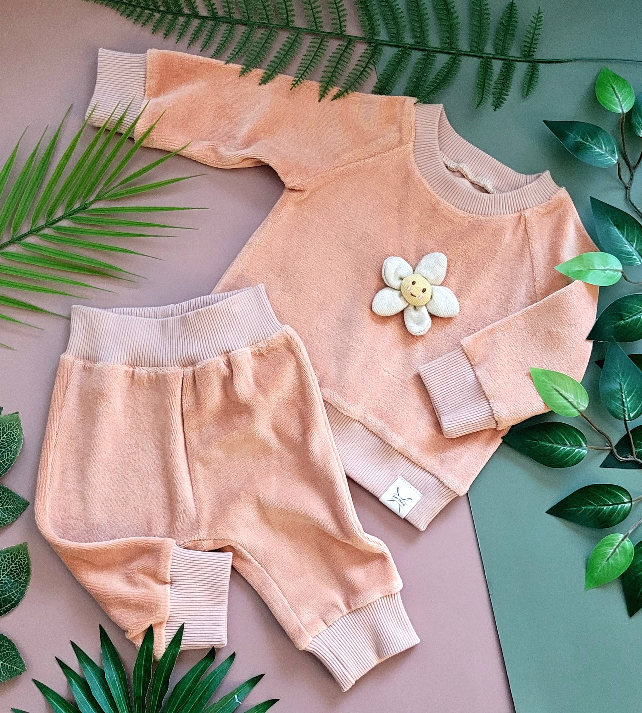 Medvilninio veliūro kostiumėlis su iškilia aplikacija. Sudėtis: 95 % medvilnė, 5 % elastanas. Gaminio priežiūra: skalbti 30° vandenyje, švelniu režimu. […]