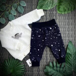Medvilninio pašiltinto trikotažo kostiumėlis. Džemperį puošia minkšta veliūrinė aplikacija. Sudėtis: 95 % medvilnė, 5 % elastanas. Gaminio priežiūra: skalbti 30° […]