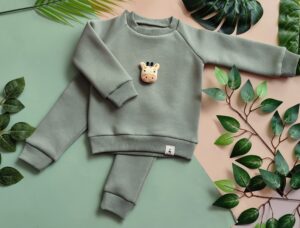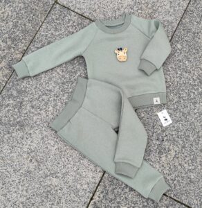 Medvilninio pašiltinto trikotažo kostiumėlis su iškilia aplikacija.